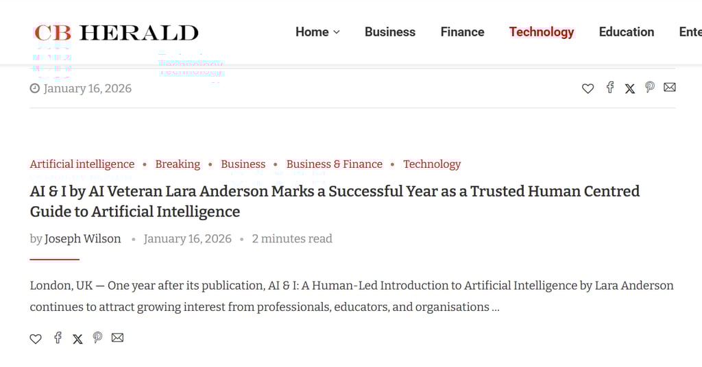 This free guide shares five key insights from Lara Anderson’s book AI & I, designed to help you think more clearly, critically, creatively and confidently about artificial intelligence.