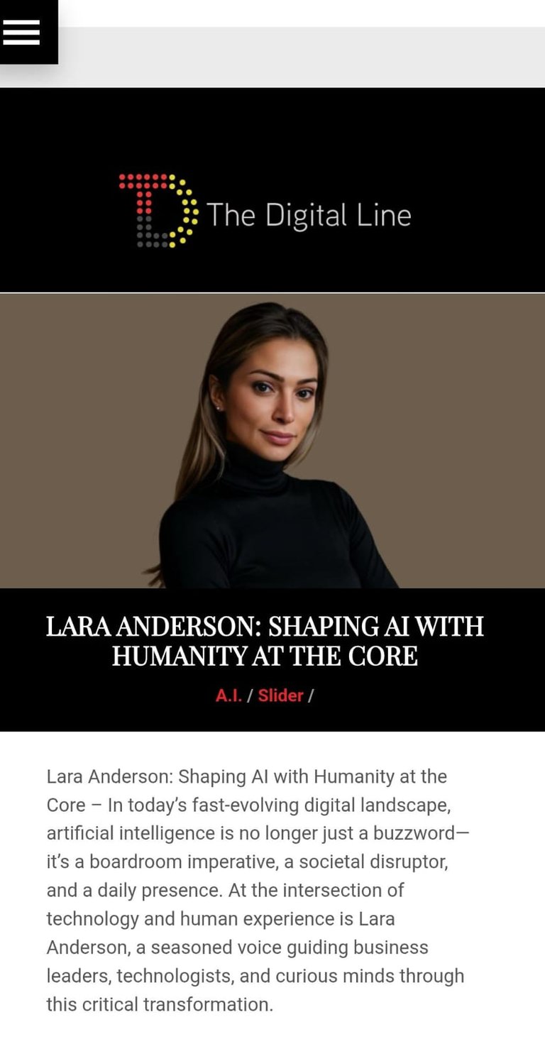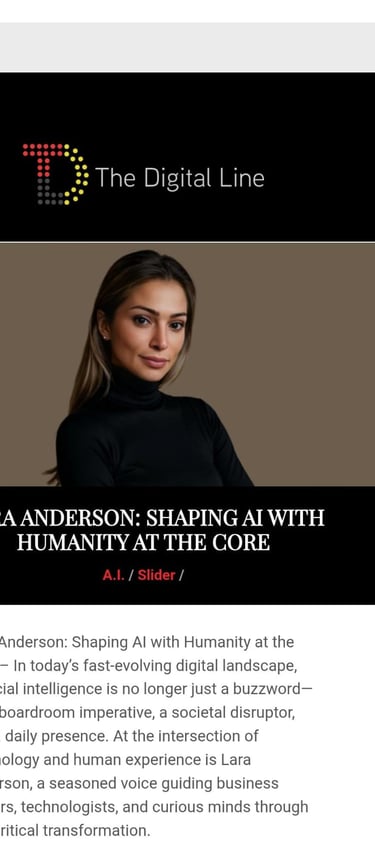 In this thoughtful profile from The Digital Line, Lara Anderson shares the values driving her work as an AI strategist, author, and advisor. Framed around her debut book AI & I, the piece explores Lara’s belief that the future of artificial intelligence must be guided by human needs, not just technical ambition. From the ethics of automation to the emotional weight of decision-making in the age of AI, the article offers an insightful introduction to Lara’s perspective and a compelling case for putting people at the centre of innovation.