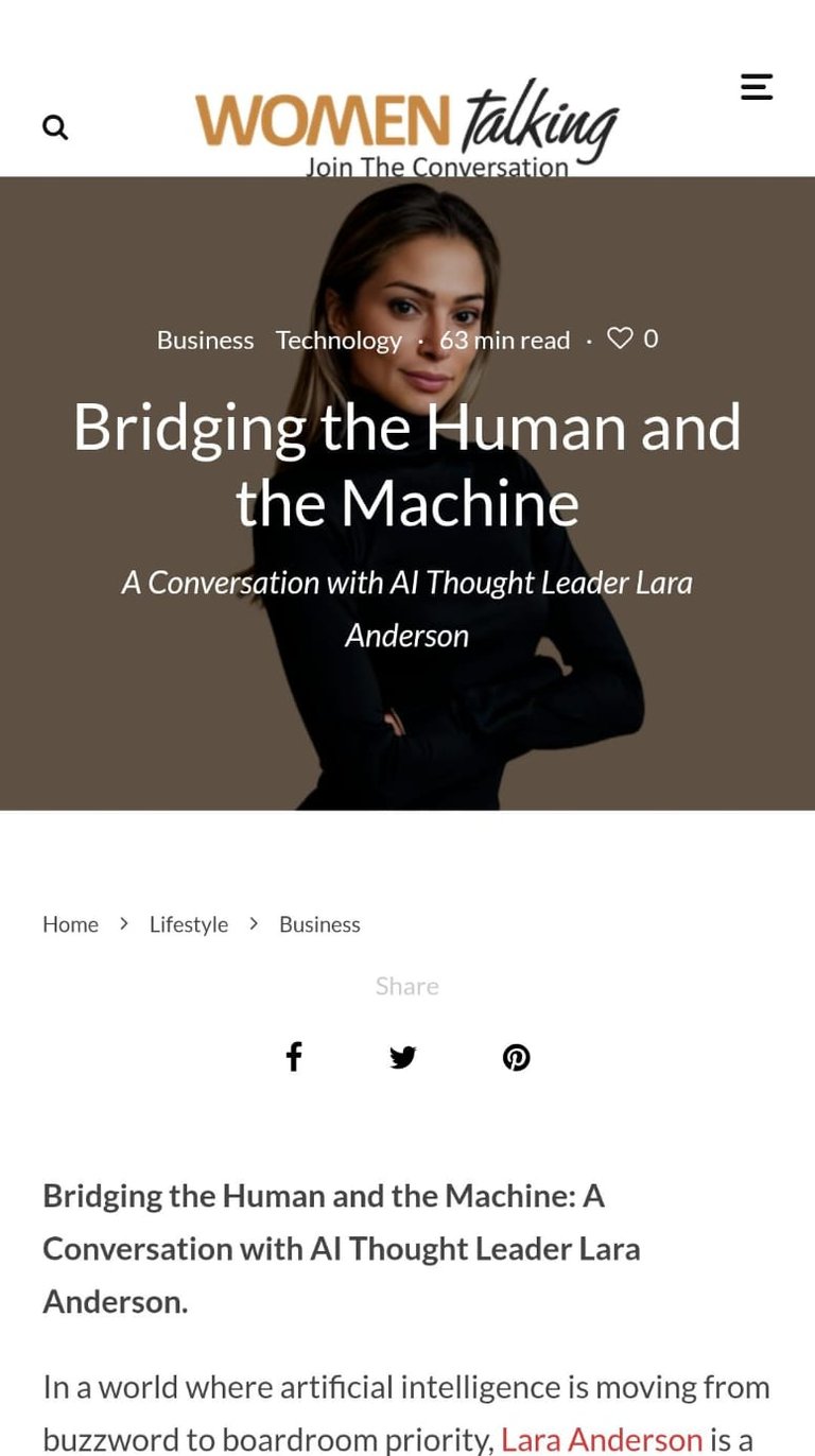 This feature from Women Talking explores Lara Anderson’s unique ability to bridge complex technology with human insight. Focusing on her background in linguistics and her work as an AI strategist, the piece highlights how AI & I blends personal reflection with practical relevance. It’s a thoughtful look at how Lara is helping readers navigate the space between the human and the machine, without losing sight of what really matters.